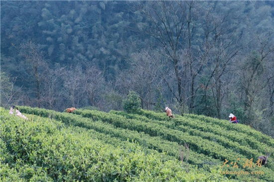 “這一片基地已經(jīng)是今年第二次采摘了,今年天氣好,早茶生長很快,品質(zhì)也很高。”春日暖陽照耀下,湖南省常德市桃源縣楊溪橋鎮(zhèn)蔡家塘村的里寶山有機(jī)茶園基地,迎來了早茶采摘的黃金時(shí)間。采茶工們正在動(dòng)作熟練的采摘茶葉,桃源縣君和野茶開發(fā)有限公司董事長詹立君興致勃勃地向記者介紹著里寶山有機(jī)茶園基地情況和今年茶葉的長勢。