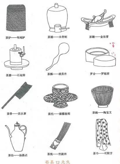 《茶具圖贊》是我國第一部以圖譜形式寫茶具的專著。審安老人用白描畫法繪制出了宋代著名斗茶所用的茶具12件,稱為“十二先生”。