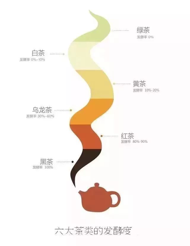 三、六大茶類(lèi)的發(fā)酵程度排序