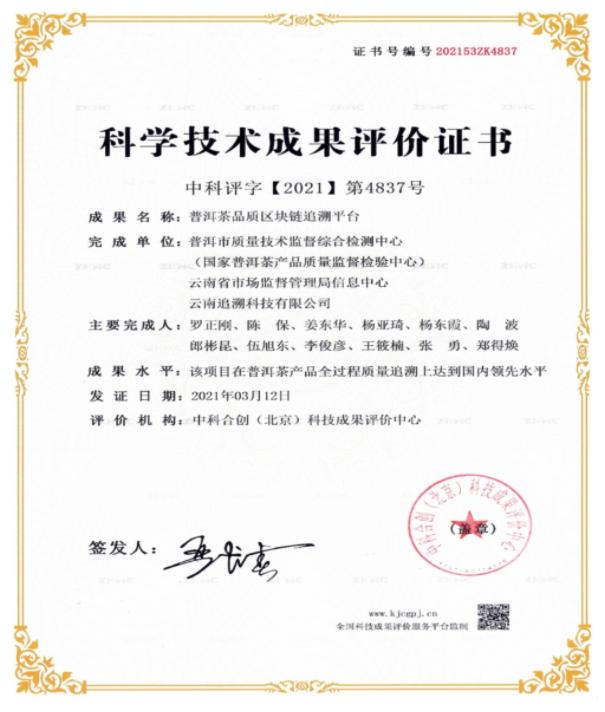 云南普洱茶品質(zhì)區(qū)塊鏈追溯平臺(tái)項(xiàng)目科技成果取得新成效