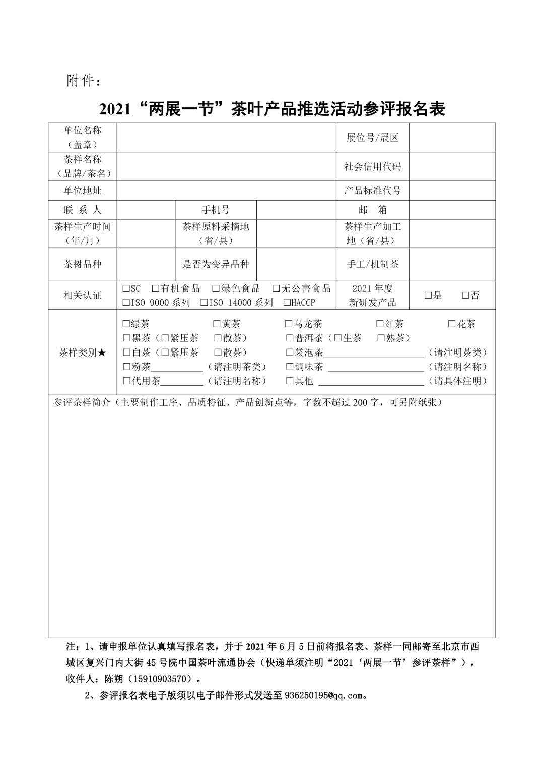 中國茶葉流通協(xié)會關于邀請參加2021“兩展一節(jié)”茶葉產(chǎn)品推選活動的通知
