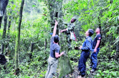 科研人員在考察西雙版納勐海大黑山古茶樹(shù)。 光明圖片