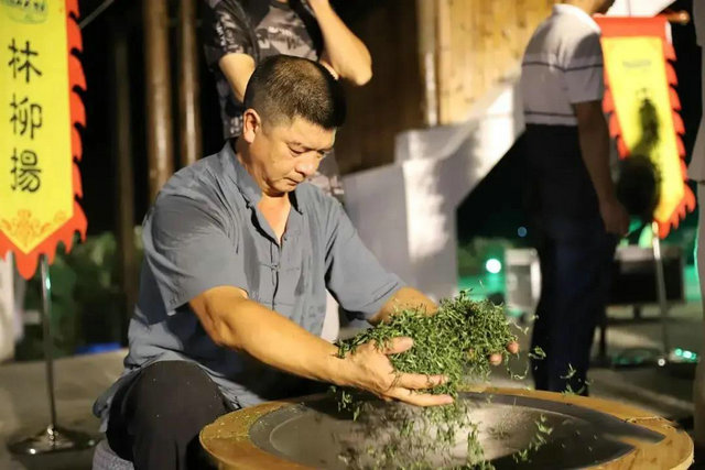 比賽現(xiàn)場(chǎng),手工制茶師們紛紛亮出絕活。只見(jiàn)制茶師將茶葉快速入鍋,嫻熟的雙手在溫度200攝氏度左右的炒鍋中翻轉(zhuǎn)騰挪。經(jīng)過(guò)一遍遍翻炒、一遍遍揉捻、一遍遍抖散茶團(tuán),周寧高山云霧茶濃郁的清香撲鼻而來(lái)。