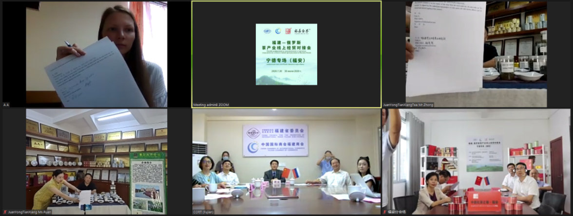 7月30日下午,由中國國際貿(mào)易促進委員會福建省委員會、中國國際商會福建商會、寧德市人民政府、俄羅斯國家工商會、俄羅斯下諾夫哥羅德州工商會聯(lián)合主辦,寧德市貿(mào)促會、福安市人民政府、福鼎市人民政府、21世紀(jì)海上絲綢之路商務(wù)理事會福建聯(lián)絡(luò)辦公室承辦,福安市貿(mào)促會、福鼎市貿(mào)促會、福安市茶業(yè)管理局、21世紀(jì)海上絲綢之路商務(wù)理事會福建聯(lián)絡(luò)辦公室武夷山工作站、福建世創(chuàng)商務(wù)展覽有限公司執(zhí)行承辦的“福建—俄羅斯茶產(chǎn)業(yè)線上經(jīng)貿(mào)對接會寧德專場(福安)”通過跨境會議系統(tǒng)平臺成功舉行。省貿(mào)促會傅健副會長、陳揚副會長、楊立云秘書長,以及聯(lián)絡(luò)部、貿(mào)易投資促進部、事業(yè)發(fā)展部負(fù)責(zé)人在省貿(mào)促會主會場出席了專場對接會。來自俄羅斯等獨聯(lián)體國家的近50名境外商協(xié)會、經(jīng)貿(mào)促進機構(gòu)代表和采購商,以及17家寧德等地優(yōu)質(zhì)茶企一同參加線上對接活動。