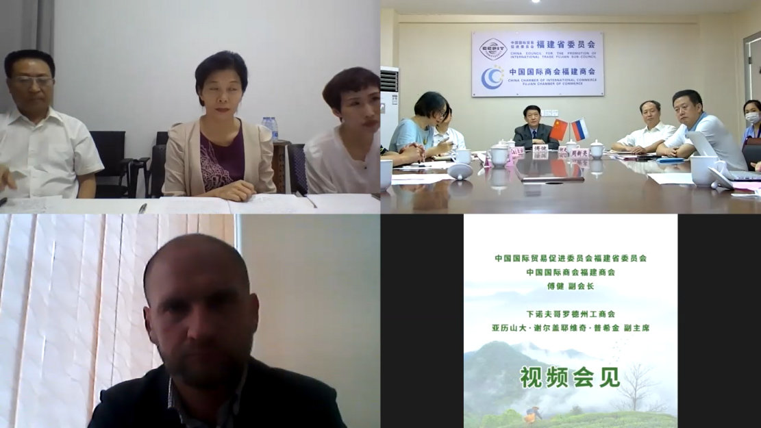 福建省貿(mào)促會與俄羅斯下諾夫哥羅德州工商會視頻會見現(xiàn)場