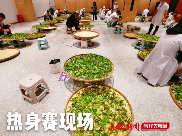 熱身賽現(xiàn)場(chǎng),20余位身著白色大褂的行家里手細(xì)致地挑摘著鮮葉。為保證比賽公平,比賽使用的茶葉均是舉辦方統(tǒng)一提供的習(xí)水古樹(shù)茶。