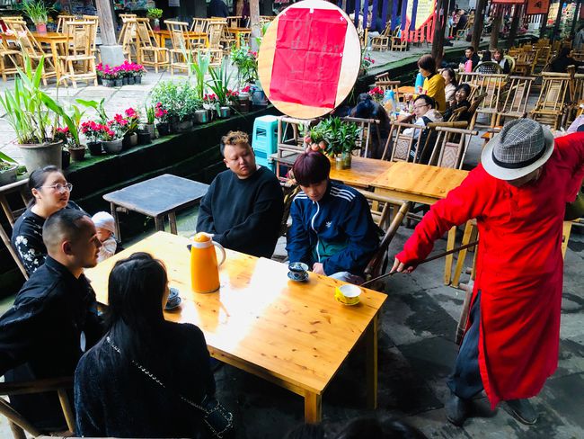 老周的生活,從一杯蓋碗茶開始,喝一口茶,跟客人擺會龍門陣,張家長李家短,可以消磨一天的時光。上過央視,經(jīng)常接受電視、報紙采訪的老周,已經(jīng)成了古鎮(zhèn)的“網(wǎng)紅茶倌”。不少游客慕名到他的茶館來,喝杯蓋碗茶,給他拍照、寫生,聽他講古鎮(zhèn)的前世今生。